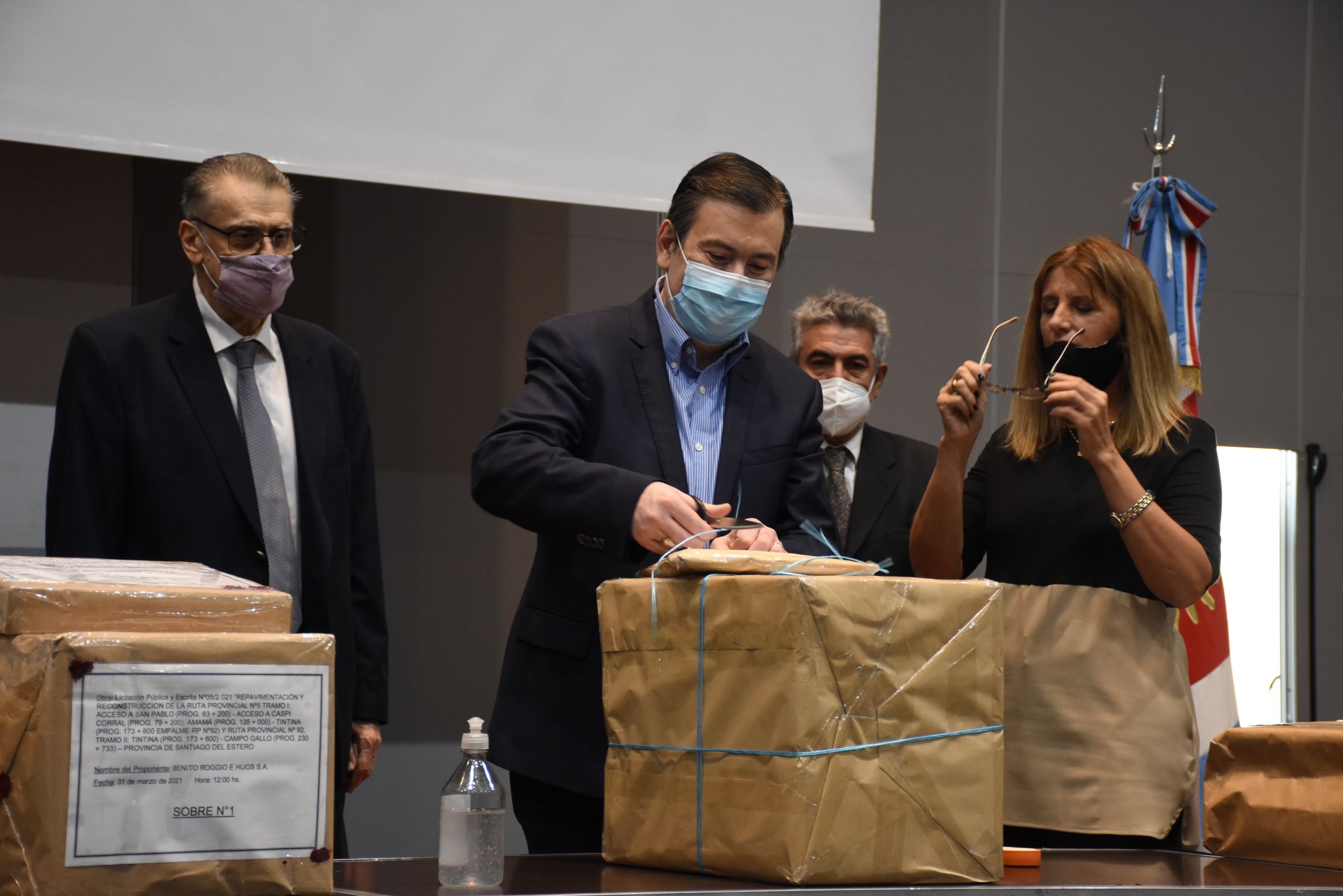 El acto estuvo encabezado por el Gobernador de la provincia, Dr. Gerardo Zamora acompañado por el ministro de Obras Públicas, Agua y Medio Ambiente, Arq. Argentino Cambrini, presidente del Consejo Provincial de Vialidad de la provincia, Ing. José Alfano, Jefe del distrito N° 16 de Vialidad de la Nación, Ing. Carlos Ferreyro, Escribana de Gobierno, María Virginia Viaña . También acompañaron los Intendentes de Campo Gallo, José Vittar, de Tintina, Luis Gonzales y los comisionados de Amamá, Nicolás Salvatierra, comisionada de Donadeu, Virginia Ibarra , comisionado de Granadero Gatica, José Rodríguez y comisionado de Libertad, Ramón Coria. Asimismo, los diputados provinciales Amado Chamorro y Mario Cantoni y los representantes de las ocho empresas oferentes.