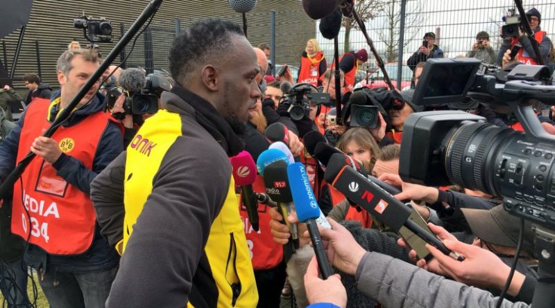 Al comienzo de los ejercicios bajo las órdenes del técnico Peter Stöger, el retirado sprinter cumplió una rutina de trote, practicó elongaciones y realizó pases de pelota con Mario Götze y Nuri Sahin.