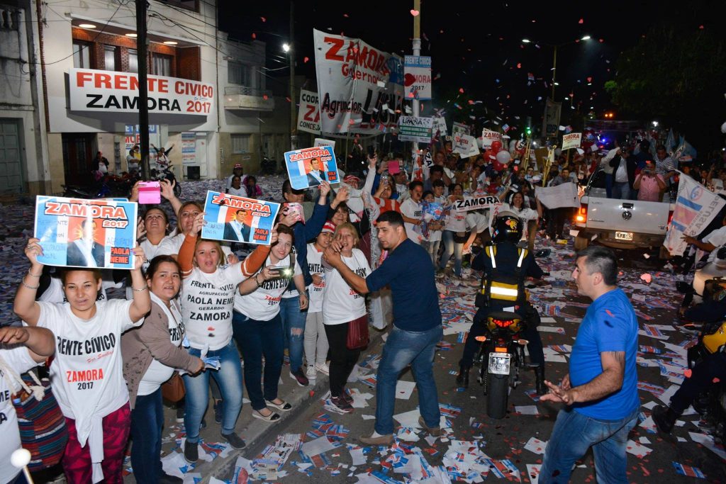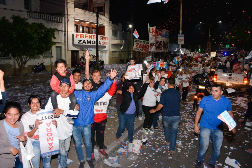 Una vez finalizados los comicios y conocidos los resultados oficiales, una gran cantidad de vehículos iniciaron la ya habitual y conocida Caravana del triunfo del Frente Cívico que partió del búnker ubicado en calle Rivadavia de la ciudad Capital.