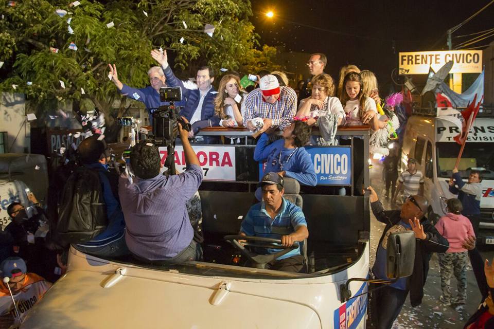 Los principales candidatos partieron en un colectivo descapotable dispuesto para la ocasión. Estuvieron el Senador Dr. Gerardo Zamora, junto a la Gobernadora de la Provincia, Dra. Claudia de Zamora, quien fuera electa Diputada Nacional junto al intendente de la Ciudad Capital Hugo Orlando «Lito» Infante; y el reelecto vicegobernador de la provincia, José Emilio “Pichón” Neder.