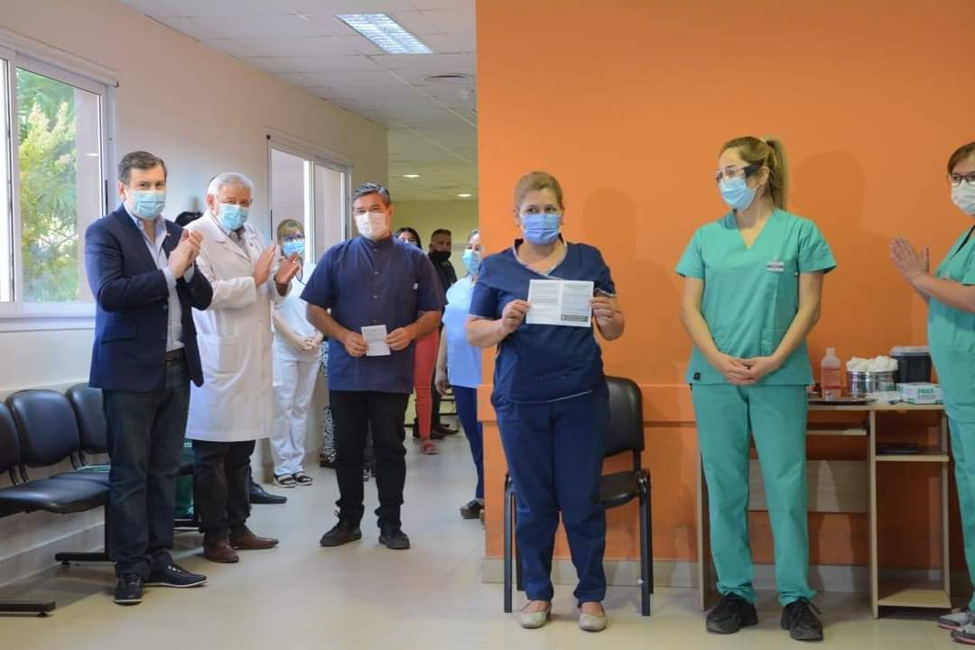 La primera en recibir la vacuna fue María Sánchez, jefa de enfermería de terapia intensiva del Hospital Independencia. Luego continuó con la vacunación de médicos y enfermeras que se desempeñan en ese centro de salud, referencia durante toda la pandemia de covid-19, Dr. Miguel Salomón, Dr. Ramón Vergara, Dr. Pablo Secco, y Dr. Rodrigo Montesino.