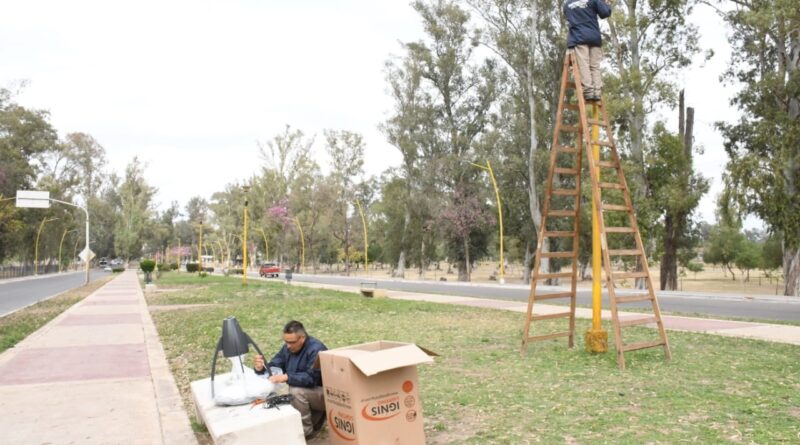 En esta oportunidad, se renovó y optimizó la iluminación del paseo que se ubica sobre las calles Olaechea y Diego de Rojas, donde se reconvirtieron 120 lámparas existentes y se pintaron y repararon las correspondientes columnas y bases que las sostienen.