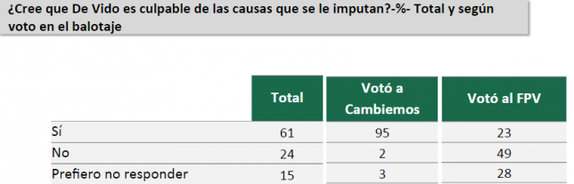 Si bien casi la totalidad de los seguidores de Cambiemos lo considera culpable, la mitad de los votantes del FPV afirma la inocencia del exministro de Planificación Federal, Inversión Pública y Servicios.