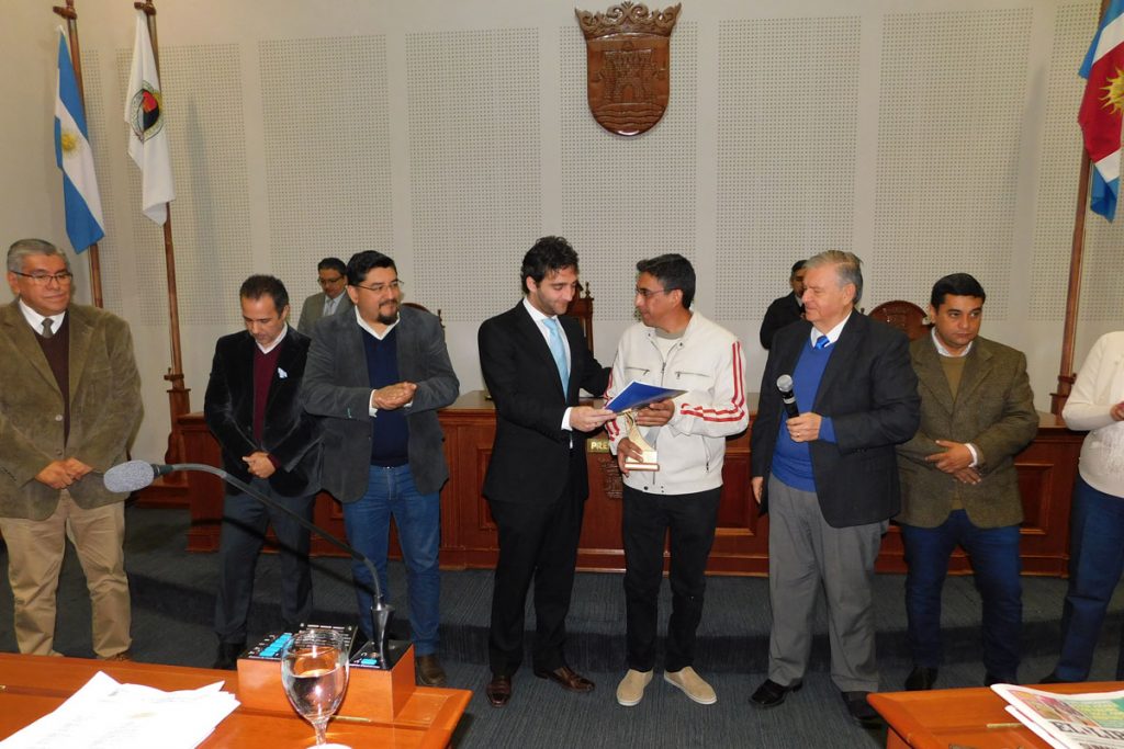 Previo al tratamiento de asuntos ingresados, ediles procedieron a la entrega de ordenanzas y plaquetas recordatorias a quienes en la sesión anterior fueron distinguidos por su labor en la sociedad. Es así que destacaron a Luis Alberto Coronel como “Vecino Solidario” y a Germán Montenegro, conductor del programa “Loquitos por el Fútbol”. La entrega estuvo encabezada por el presidente del cuerpo, CPN Juan Manuel Beltramino acompañado por los concejales de las diversas bancadas.