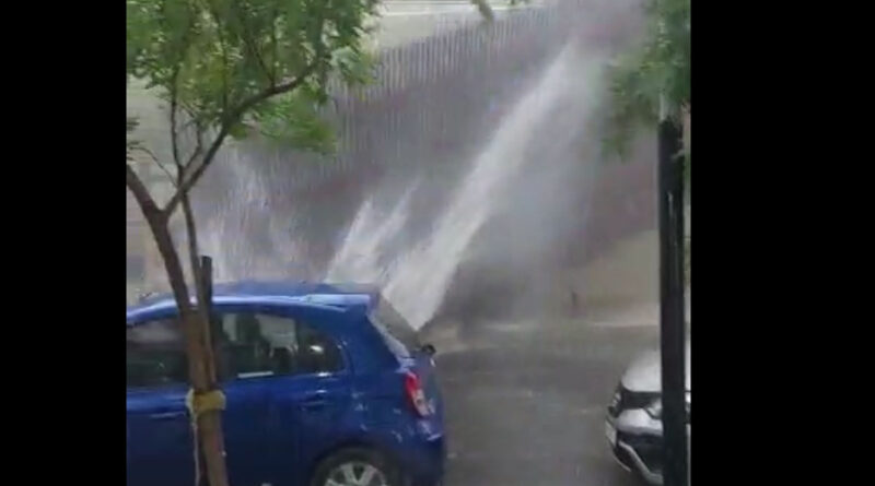 Uno de los videos que más circuló, y de los más impactantes, es el segundo en el que un techo de chapa completo cae a la calle segundod espués de que pasara un vehículo. El mismo fue tomado desde una vivienda ubicada frente a la Escuela Zorrilla, en avenida Moreno en la ciudad Capital.