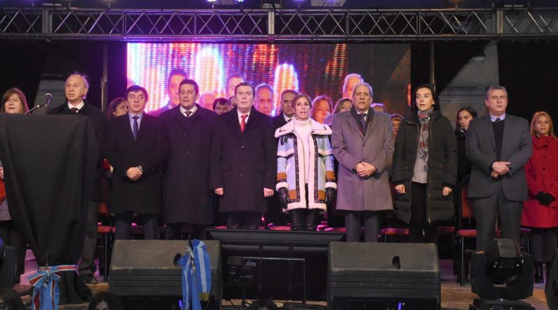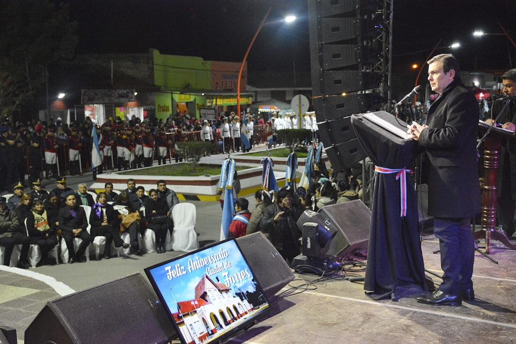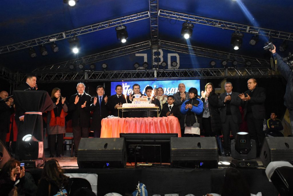 La ceremonia concluyó con el tradicional corte de la torta y el canto del feliz cumpleaños con el acompañamiento de la Banda de Música de la Policía de la Provincia; un desfile cívico militar y un espectáculo musical.