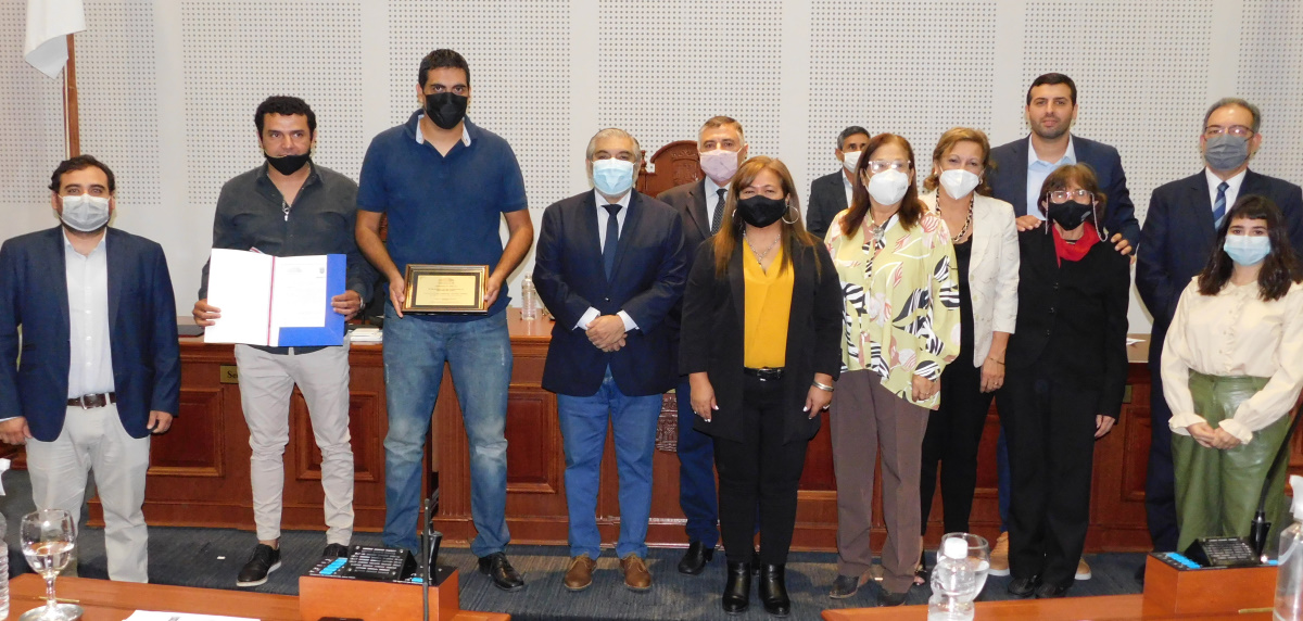 Hoy, se entregó copia fiel de la Ordenanza y una plaqueta recordatoria a la Institución enunciada en el artículo 1°, en la persona de las autoridades del club, su presidente, Juan Toledo y a su tesorero, Adrián Carrizo.