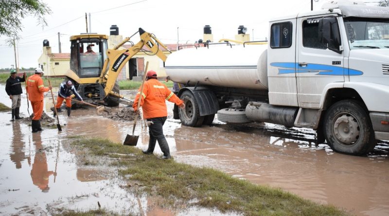 En el marco de esas acciones, en la jornada del miércoles, los operarios y la maquinaria de la municipalidad siguieron con los trabajos para desagotar varias cuadras del barrio Los Telefónicos, sector 100 viviendas, ya que se había acumulado una gran cantidad de agua.