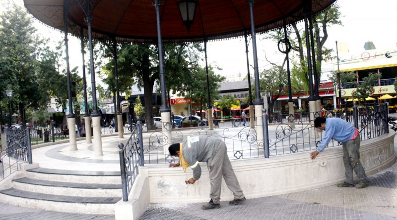 Dicho trabajo, realizado por personal municipal, se ejecuta en la Retreta, cestos de basura, bancos y sector del mástil con tareas de revoque, pintura y puesta en condiciones de los sectores emblemáticos de la plaza.
