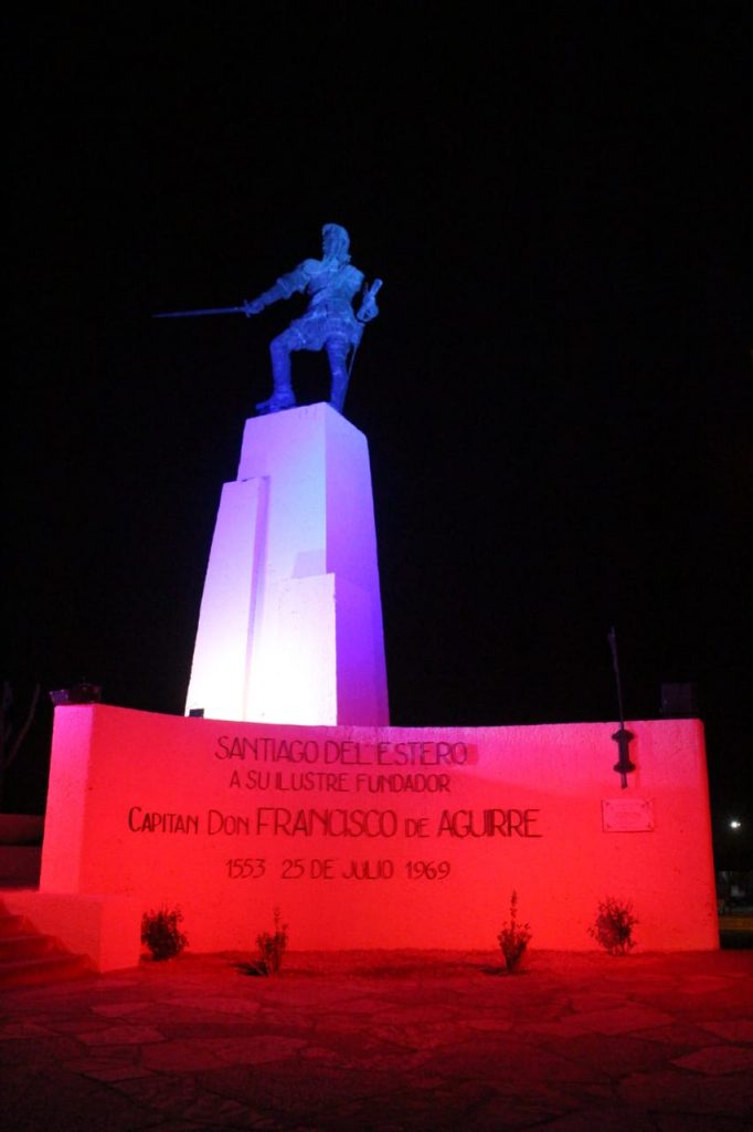 El municipio y el monumento a Francisco de Aguirre fueron iluminados con los colores de la bandera santiagueña
