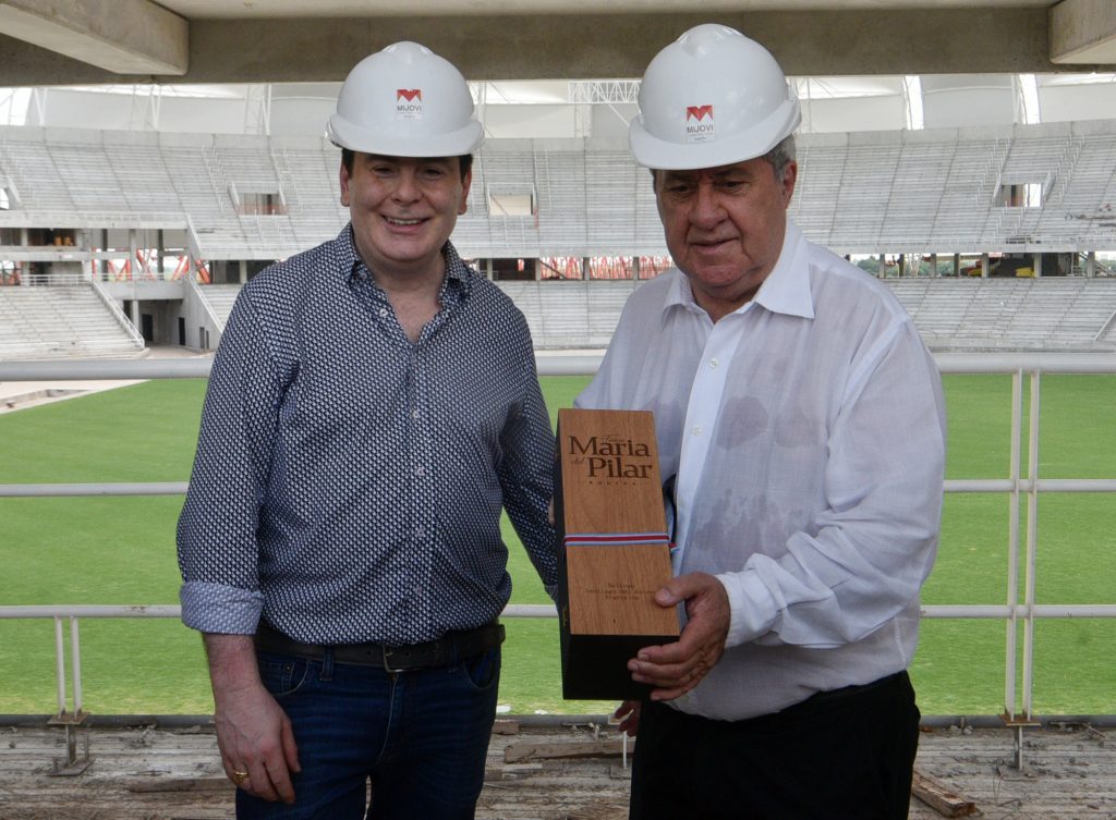 El primer mandatario y el presidente de Boca, realizaron la visita por la estructura del estadio único de nuestra provincia, donde el dirigente xeneize fue interiorizado de los avances de la obra.