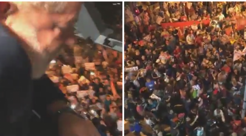 «Lula, guerrero, del pueblo brasileño», cantaban los manifestantes cuando el líder del PT salió por la ventana a saludar a la multitud.