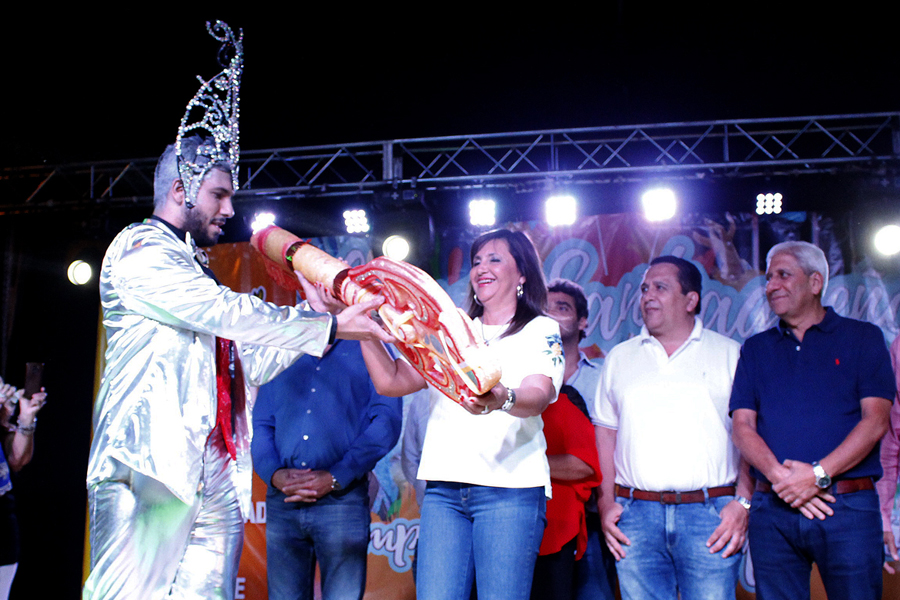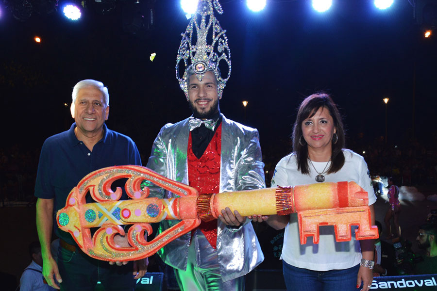 La apertura oficial, al tradicional paso de las comparsas, dio comienzo con la entrega de las llaves de la ciudad por parte de la Intendente, Ing. Norma Fuentes al Rey Momo, quien encabezó el desfile a lo largo de la Nueva Costanera y ante la multitud presente.