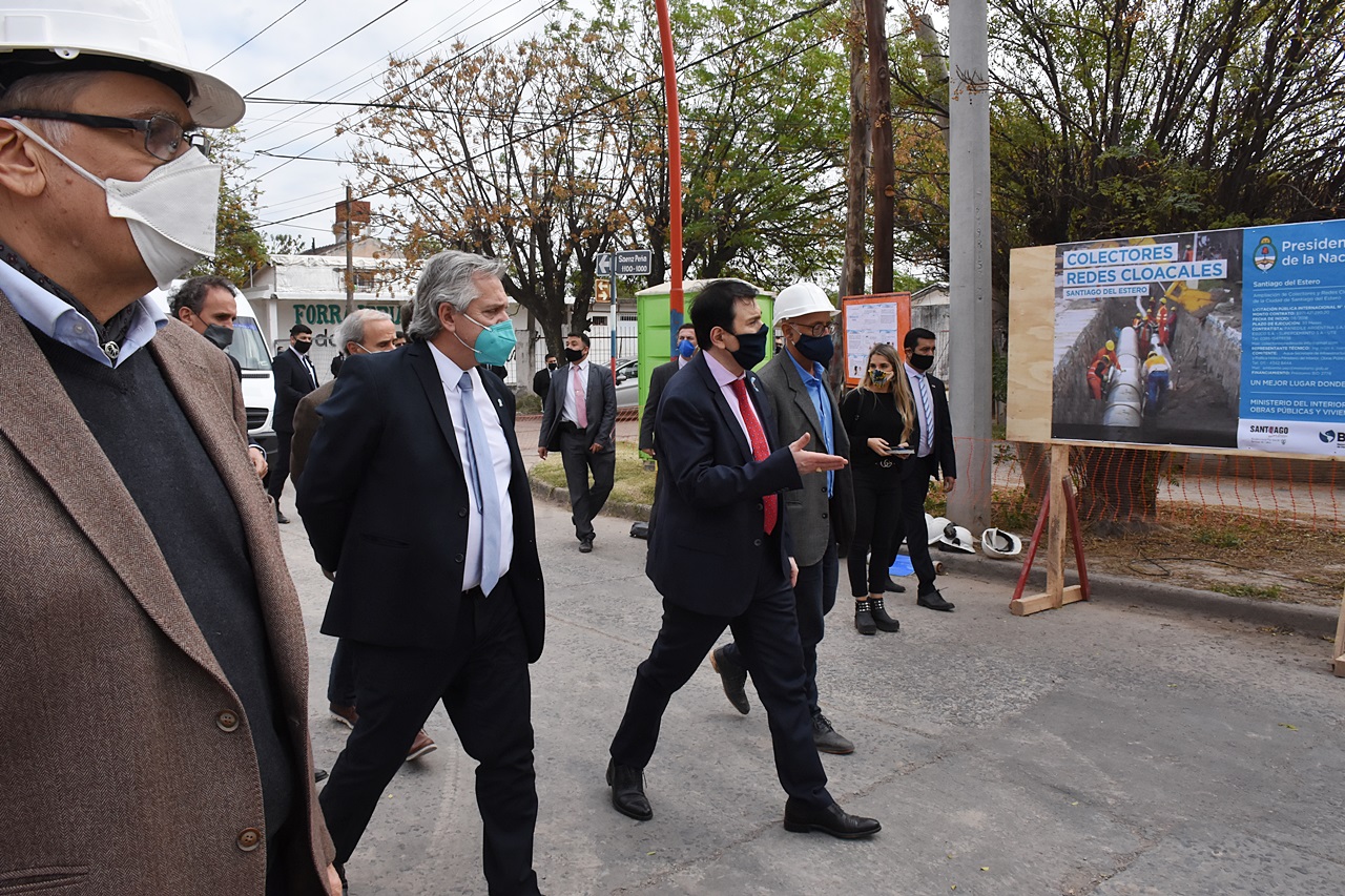 Acompañado por ministros y funcionarios, Fernández compartió con el gobernador Gerardo Zamora recorridas y visitas a obras que se están desarrollando en Santiago del Estero, con el aporte del Ministerio de Obras Públicas, que conduce Gabriel Katopodis.