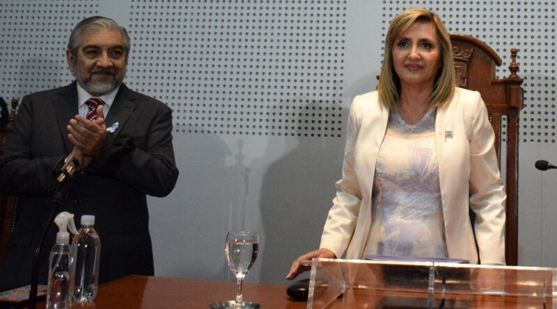Pasadas las 18.50 llegó al edificio del Concejo Deliberante de la Capital, la intendente Ing. Norma Fuentes que fue recibida por el presidente del legislativo municipal y demás miembros del Cuerpo y autoridades comunales. Siguiendo con el protocolo, ingresaron al recinto y la jefa comunal realizó la firma en el libro de actas.