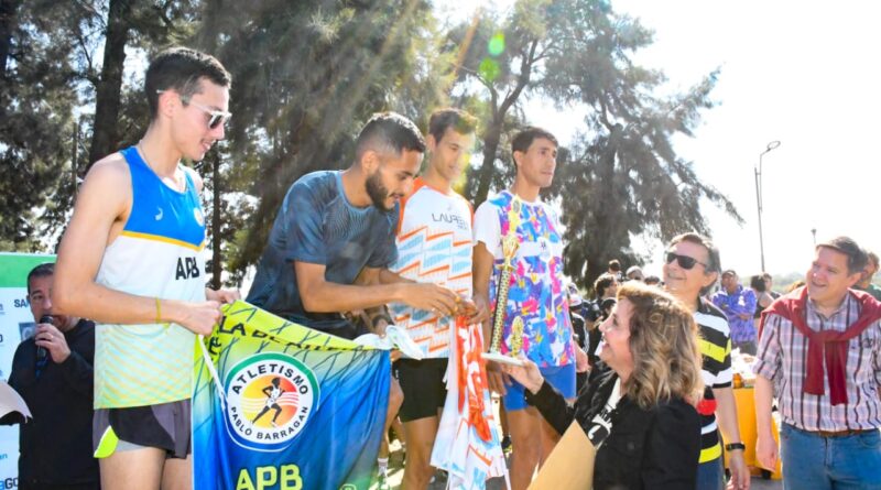La jefa comunal estuvo acompañada por los Secretarios de Coordinación de Gabinete, Dr. Daniel Kobylañski y de Gobierno, Ing. Néstor Machado, al hacer entrega de trofeos a los ganadores de las categorías 10 km y 5 Km, de mujeres y hombres.