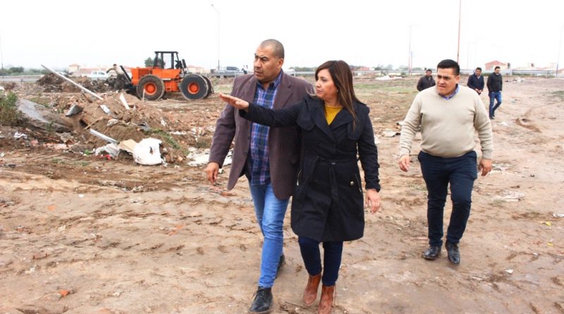 También, la intendente supervisó las tareas de nivelación y desmalezamiento que se realizan en otro terreno del Lomas del Golf, que estaba siendo utilizado como un minibasural por gente desaprensiva, en donde se construirá una plaza para satisfacer la demanda de los habitantes del barrio.