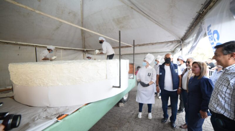 La Intendente Ing. Norma Fuentes visitó la carpa ubicada en el Parque Aguirre, donde maestros pasteleros se encuentran elaborando un alfajor santiagueño de grandes dimensiones, en homenaje a los 469º años de la “Madre de ciudades”.