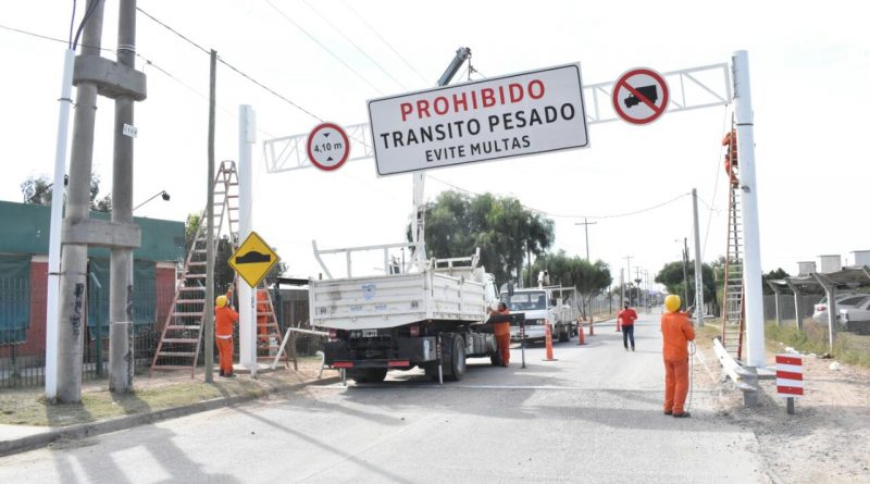 La Municipalidad comenzó la instalación de pórticos, un total de siete, que colocará en diferentes puntos de la ciudad, para evitar la circulación interna de grandes camiones de carga.