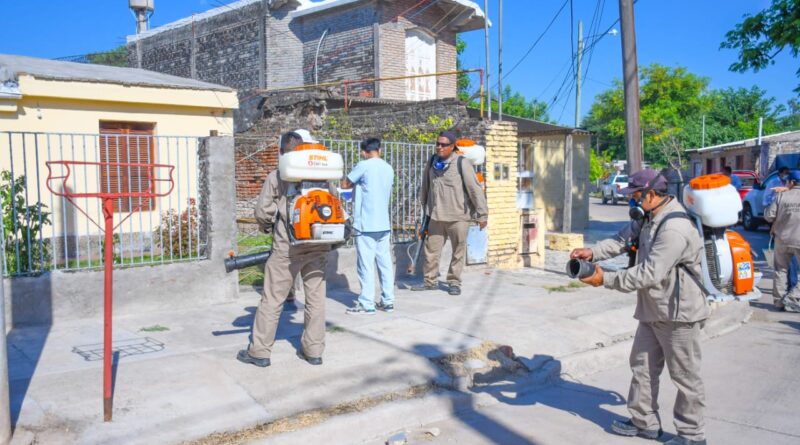 Los trabajos consisten en el cumplimiento del refuerzo del cronograma semanal de fumigaciones contra mosquitos, a cargo de la Dirección de Calidad de Vida, abarcando de manera progresiva distintos barrios.