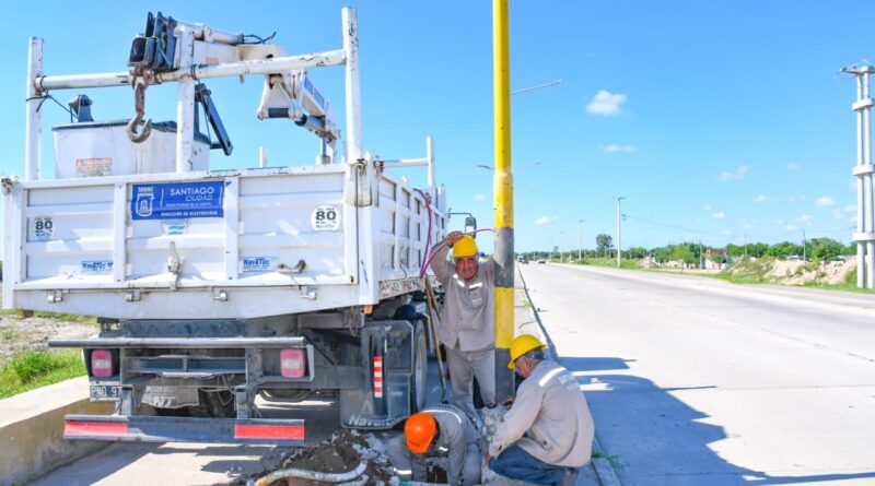 La Dirección de Electricidad de la Municipalidad de la Capital trabaja para restablecer el servicio de alumbrado público en la Costanera, en el tramo comprendido entre Alsina y Solís, que se vio interrumpido por el robo de los cables subterráneos del sector.