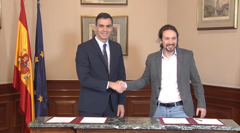 Sánchez ganó los comicios del 10 de noviembre, dos días después, firmó un acuerdo de gobierno de coalición con el líder Pablo Iglesias y sumó 155 diputados en el Congreso.