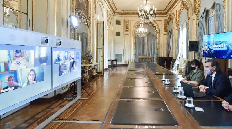 La jefa comunal formó parte del encuentro virtual desde su domicilio para avanzar en la incorporación de herramientas digitales que permitan mejorar los procesos administrativos. La comunicación se hizo desde el Salón Norte de la Casa Rosada y junto a Cafiero estuvo la secretaria de Innovación Pública, Micaela Sánchez Malcolm.
