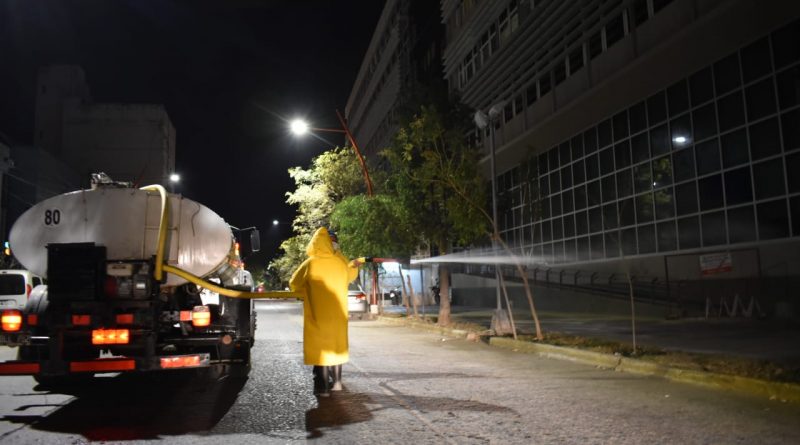 La Capital, a través de su personal de la Dirección de Servicios Urbanos, concretó nuevamente trabajos preventivos en el centro de la ciudad, donde confluyen actividades administrativas, comerciales y de servicios, con la sanitización de las zonas en las que se registra el mayor movimiento de personas.