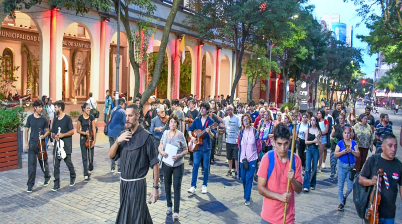 En las actividades de Semana Santa, la Municipalidad de la Capital acompañó el Viacrucis con violines que partió desde la Iglesia San Francisco y concluyó en la Catedral Basílica con la misa crismal.