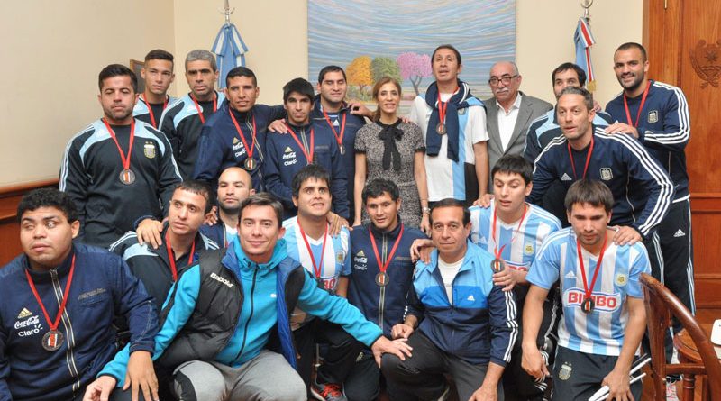 La Gobernadora de la Provincia, Dra. Claudia de Zamora, acompañada por el subsecretario de Deportes de la provincia, Prof. Carlos Dapello, recibió en el salón de acuerdos de casa de gobierno la visita de la selección masculina de fútbol para ciegos “Los Murciélagos”, de la que forman parte los santiagueños Iván Figueroa y Froilán Padilla