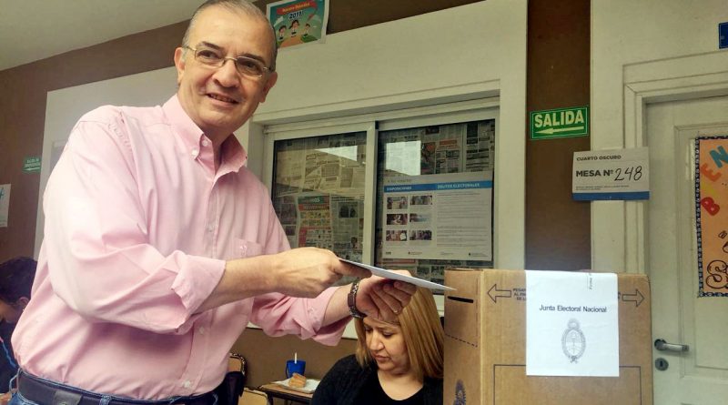El candidato a gobernador por el frente Cambiemos, Ing Marcelo Lugones, emitió su sfragio cerca de las 11 hs, en el Colegio «Jorge Gottau».