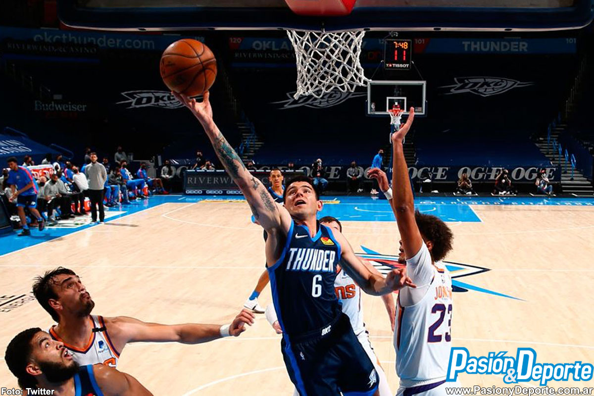 El santiagueño Gabriel Deck cumplió su mejor actuación en la NBA de las tres presentaciones que lleva en Oklahoma City Thunder, durante los casi 19 minutos que estuvo sobre el rectángulo de juego del Chesapeake Energy Arena, donde su equipo cayó ajustadamente como local ante Phoenix Suns por 123 a 120. El oriundo de Colonia Dora, de 26 años, permaneció 18 minutos y 42 segundos en cancha, lapso en el que registró su mayor cantidad de anotaciones, ya que convirtió 11 puntos, contra los 2 del debut y los 8 de su segunda presentación.