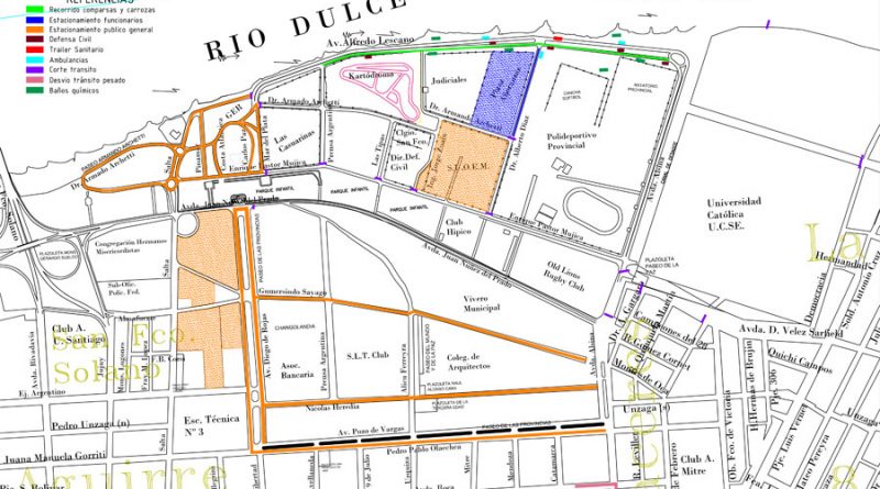 Ante el inicio de una nueva edición de los Corsos Santiagueños 2018, la Municipalidad de la Capital se encuentra reforzando el trabajo, en especial el referido a la disposición de los espacios para la circulación vehicular y peatonal, en el parque Aguirre.