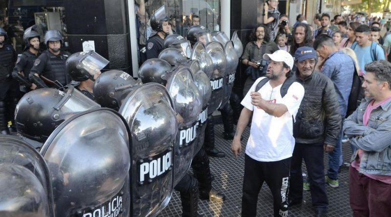 Fuentes del Ministerio de Seguridad de la ciudad de Buenos Aires señalaron que los dos habían sido arrestados tras agredir a equipos periodísticos de canales de televisión que cubrían la protesta organizada por los movimientos políticos.