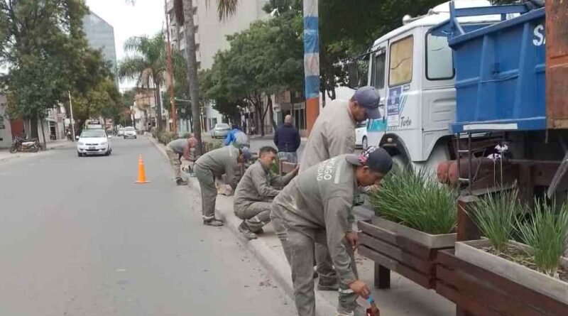 La Municipalidad de la Capital está realizando tareas de mantenimiento en la platabanda de la avenida Belgrano, en el tramo comprendido entre las calles Rivadavia y Alsina, con el propósito de preservar los canteros ornamentales de la principal vía de circulación de la ciudad.