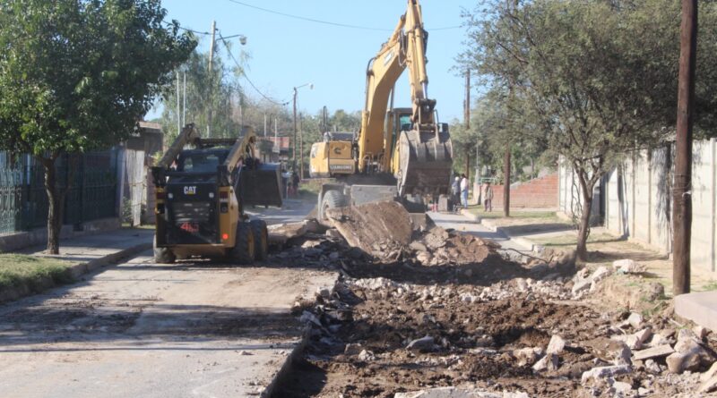 El personal y las maquinarias viales de la municipalidad retiraron el pavimento para que la empresa de servicios de agua repare los caños y posteriormente comenzar en el rellenado en la intersección de Rivadavia y Diaguitas.