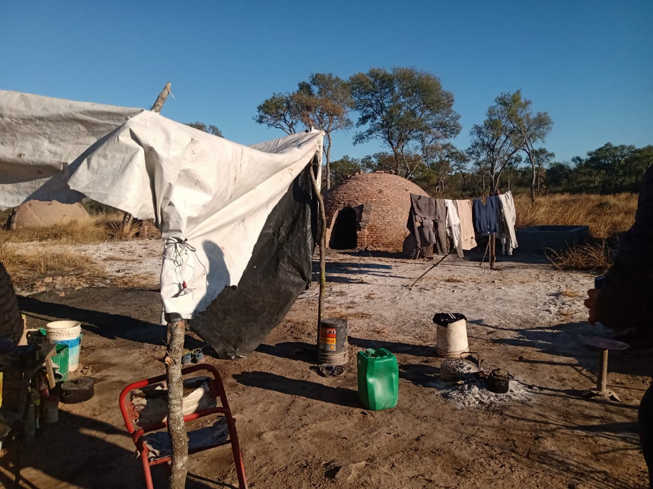 El procedimiento se inició tras una denuncia que llegó a la Secretaría de Trabajo de nuestra provincia, en la que se mencionaba que “un grupo de personas se encontraba trabajando sin cumplir con las mínimas condiciones de higiene, lugar para habitar, sin comida, etc”, ante lo cual se designó a una comisión de la Dirección de Delegaciones de Trabajo del Interior que se trasladó al lugar, conocido como establecimiento El Guasuncho Lote A, cercano a la ciudad de Pinto, dpto. Aguirre, donde se ubicó a un grupo de personas compuesto por 8 adultos y 3 menores (10, 12 y 14 años), todos oriundos de la provincia de Chaco, a quienes se encontró viviendo en condiciones infrahumanas, siendo prácticamente esclavizados en carpas de lona y plásticos que ellos mismos construyeron, con colchones precarios y escasas colchas, pese al intenso frío reinante.