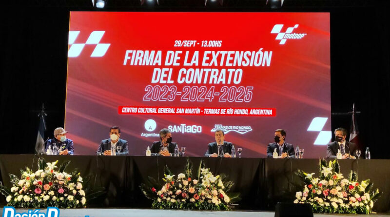 Luego de la confirmación de realización del GP Argentina de MotoGP en abril de 2022, Dorna Sports, el Ministerio de Deportes y Turismo de la Nación a través del Instituto Nacional de Promoción Turística (Inprotur) y el Gobierno de la Provincia de Santiago del Estero, en conjunto con Grupo OSD como promotor local, firmaron este miércoles el nuevo acuerdo que asegura la realización del Gran Premio de MotoGP de la República Argentina por tres años más, para las temporadas 2023, 2024 y 2025.
