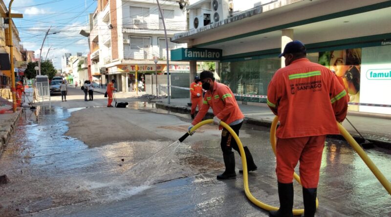 Las obras, a cargo de la empresa Aguas de Santiago, incluyeron el recambio de una cañería del servicio de distribución de agua potable, lo que obligó al municipio a cortar el tránsito en la zona de forma temporaria.