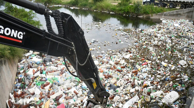Obras Públicas retiró toneladas de residuos domiciliarios desde dentro del Desagüe Principal Sur, que obstruían su funcionamiento pleno, ya que se habían acumulado en un puente próximo a la descarga en el río Dulce.