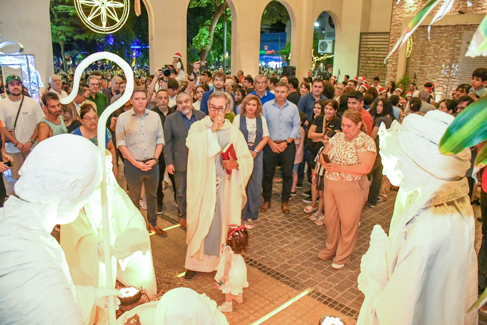 La Ing. Fuentes también recorrió la plaza Libertad junto a funcionarios y posteriormente participó de la bendición religiosa, a cargo del párroco Mario Tenti de la Catedral Basílica, del pesebre de la sagrada familia instalado en el ingreso de la Municipalidad.