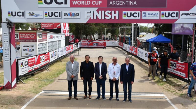 El Gobernador Gerardo Zamora junto al Jefe de Gabinete de Ministros, Elías Suarez, participó de la primera jornada de la Copa del Mundo UCI BMX Racing 2025, que se desarrolla del 20 al 21 de septiembre en la pista la Catedral del BMX del Polideportivo provincial, convocando a 300 pilotos de 26 países.